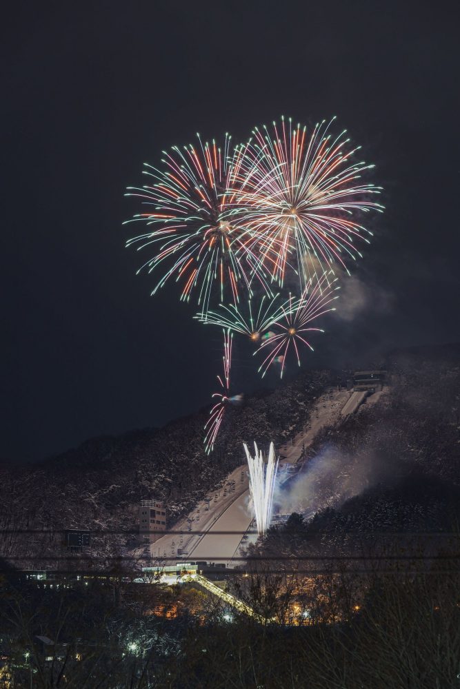実は、冬は夏に比べて水蒸気やちり・ほこりが少なく、空気が澄んでいるため、夜景や星空がきれいに見られる時期といわれています。大倉山ジャンプ競技場は、夜景スポットとしても人気が高いですが、今回のイベントでは空に打ち上げられる花火が、夏よりきれいに見られるかも…!キンと冷えて澄んだ冬の夜空に打ちあがる花火を、ぜひご堪能あれ。